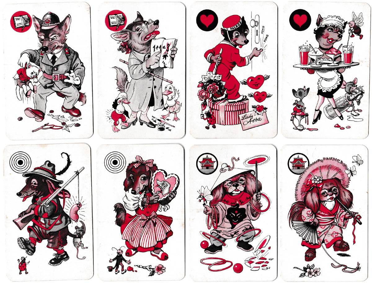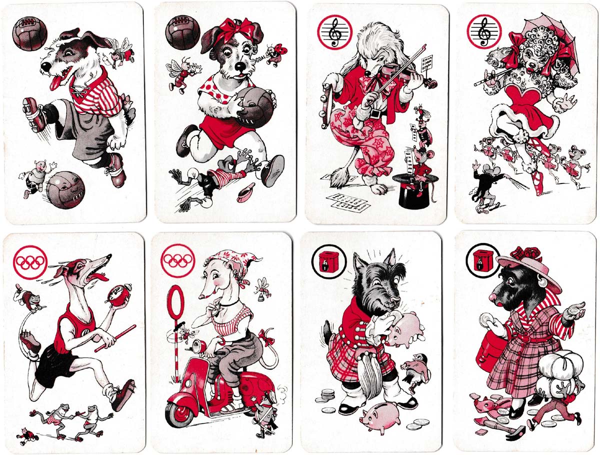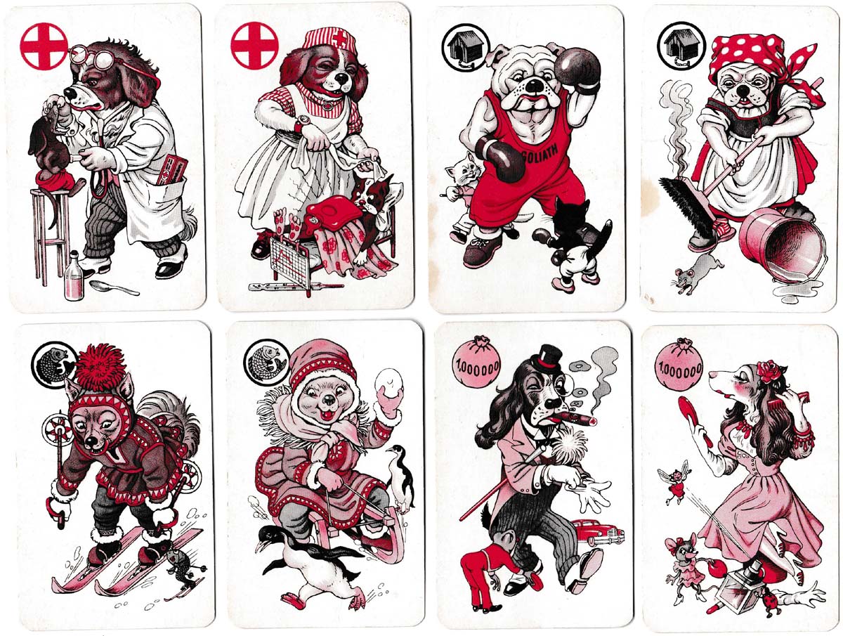 Humorous dog-themed Black Peter game illustrated by Willy Mayrl, c.1960.