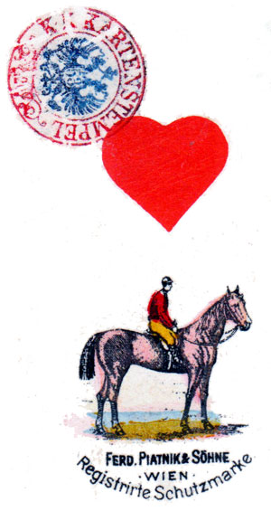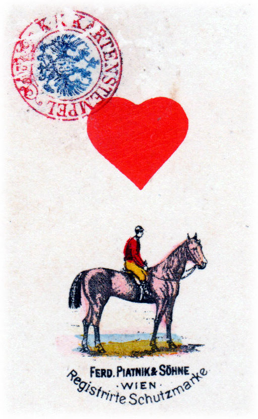 Ferdinand Piatnik’s sons had joined the business in 1882, when “& Söhne” was added to the company name, as shown on the knaves of clubs and diamonds. This changed to “Ferd. Piatnik & Söhne A.G.” when the firm became a limited company in 1917.