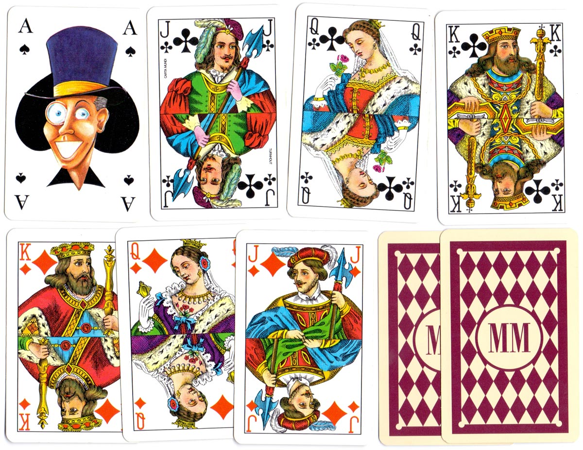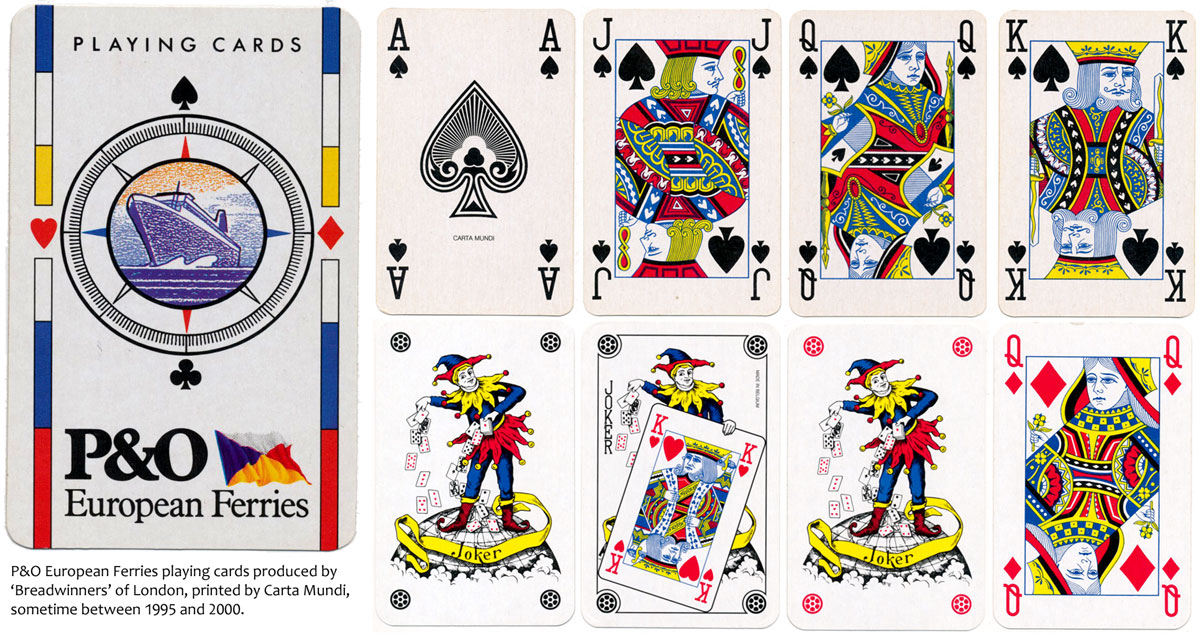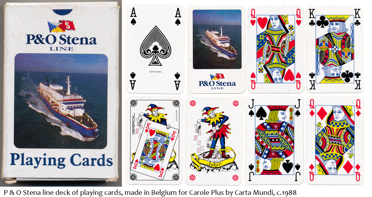 See also: Brepols & Dierckx 'Bongoût' with Scenic Aces for Brasil, c.1885 • Jeu de Cartes Estétique Nº1 • World War I Commemorative, 1919 • Biermans Scenic Aces for Brasil, c.1920 • A Todos Alumbra, c.1920 • Dilkhus, 1922 • Philips Arlita, 1925 • Brepols Scenic Aces for Brasil, c.1930 • L'Union Fait la Force, 1945 • Renée Sturbelle, 1947 • Low-Vision • Brussels Euro Joker Club 1998 • Superman • Carta Mundi Trumps Car Series • Carta Mundi Dutch pattern • Carta Mundi Spanish pattern • P&O European Shipping • P&O Stena Shipping • Fake Blanchard duty Ace of Spades.
