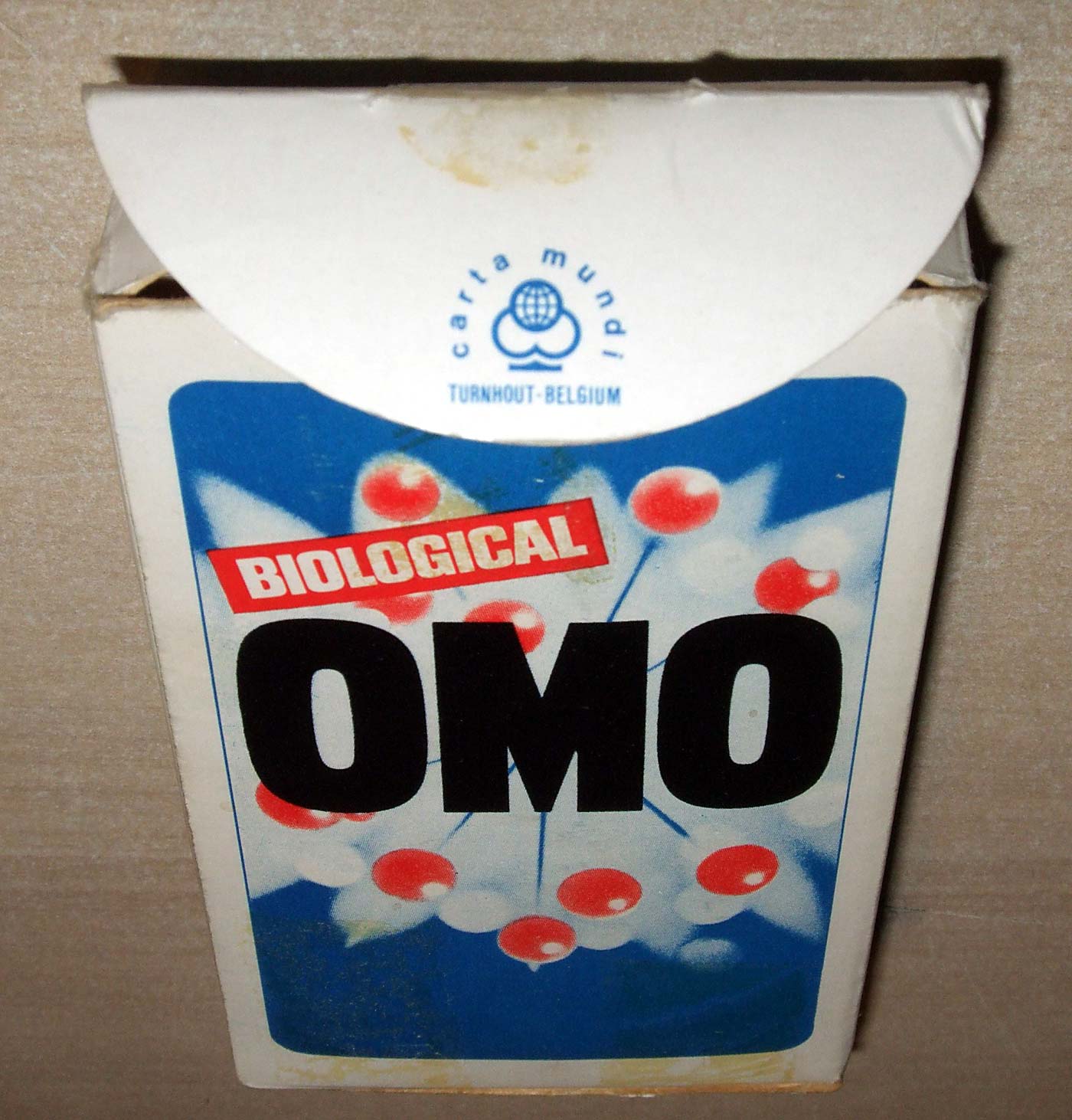 Above: standard English pattern for Omo in an early Carta Mundi box, c.1969-70. Images courtesy Matt Probert.