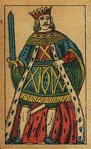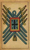 Above: modern partly-coloured reprint of the obsolete Portuguese pattern, courtesy the National Playing Card Museum, Turnhout.