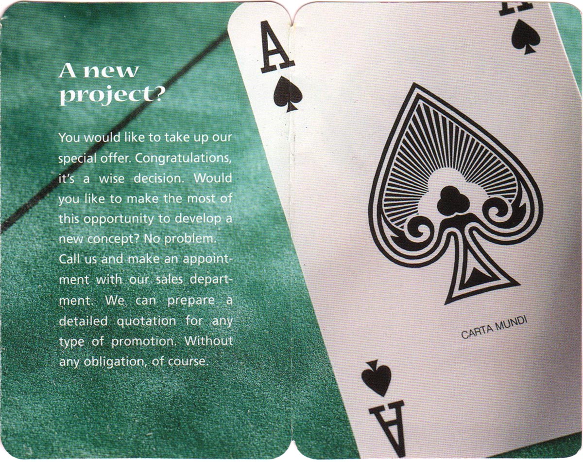 Above: advertising deck for Carta Mundi with different backs produced by Carta Mundi, 2001. From the collection of Matt Probert.
