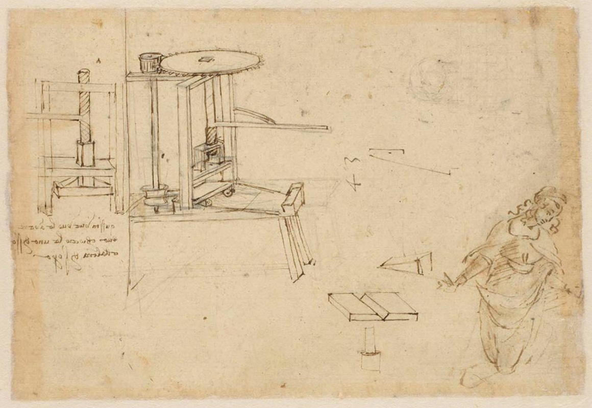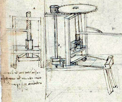 Above: Leonardo da Vinci's design for a printing press c.1480, Codex Atlanticus fol.995►