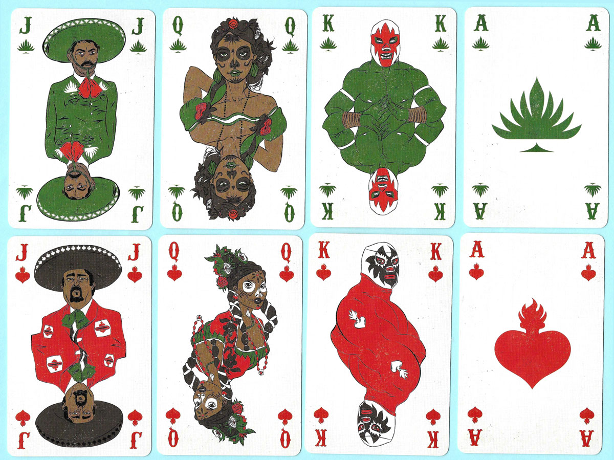 Santo Mexico playing cards designed by Cédric Volon with Mexico-associated symbols.