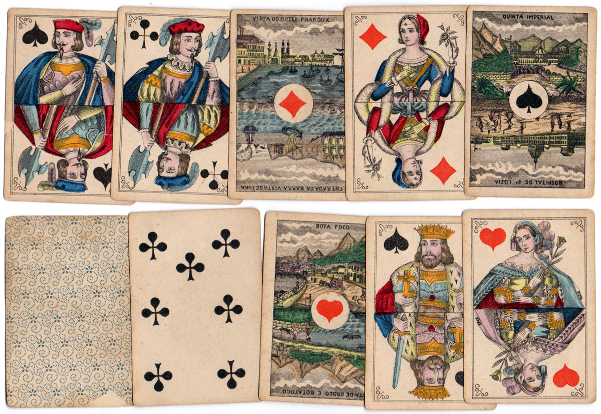 Above: Bongoût pattern playing cards with special scenic Aces for Brazil manufactured by A. Van Genechten, 1870. Stencil-coloured lithography, 32 cards. Image courtesy Barney Townshend. See another example→