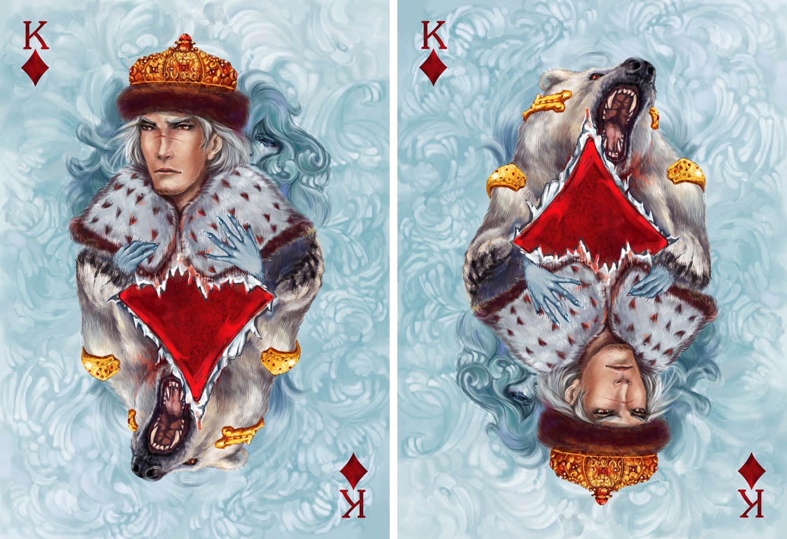 In Diamonds we want to represent you all the beauty, richness and color of our native land. These characters are orthodox Russians. A calm force, not aggressive, but powerful. You shouldn’t be afraid, if you do not harm Diamonds, but if you do, beware! They will crush you with unimaginable power.
