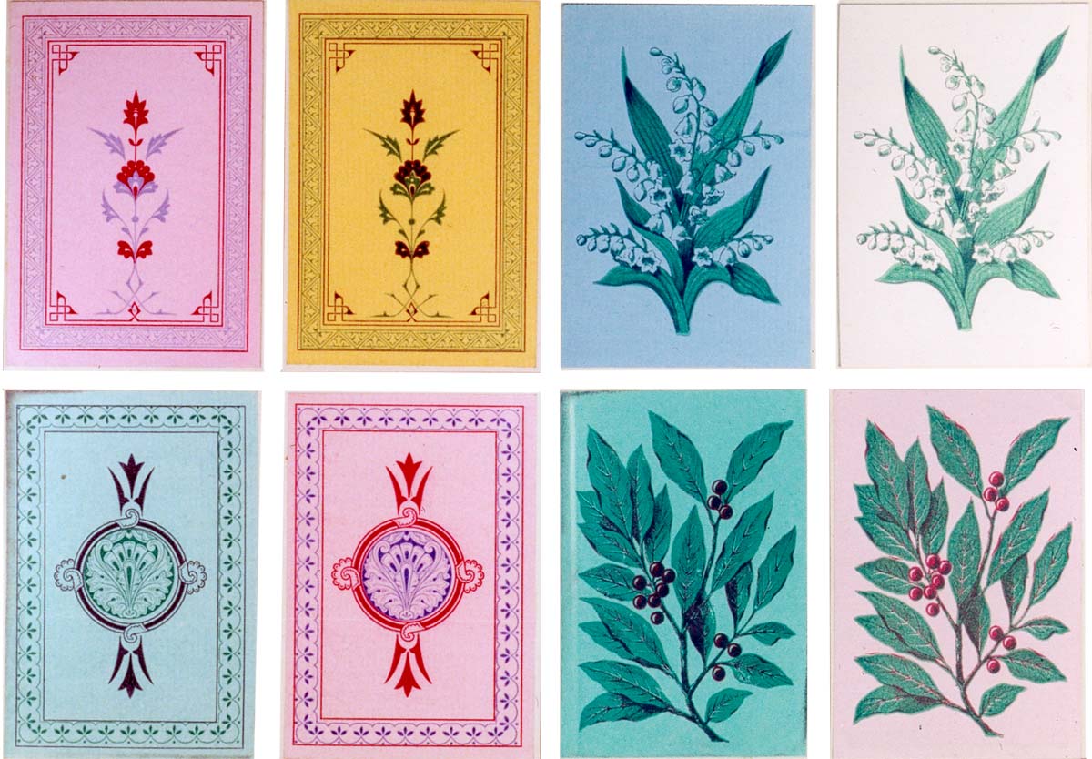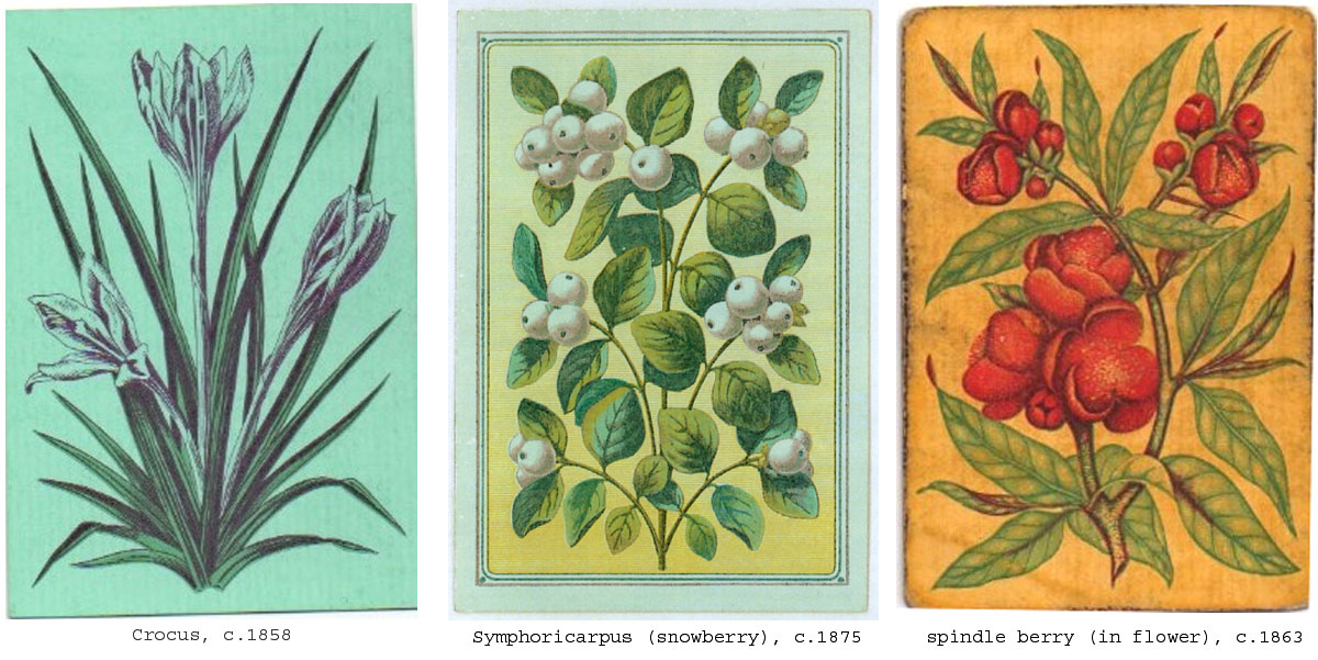 One can assume that these drawings from nature were the basis for his early designs from the 1840s and 1850s, which were similar botanical drawings. Some of them continued in use in cheaper packs into the 1870s and beyond. The violet design was particularly popular.