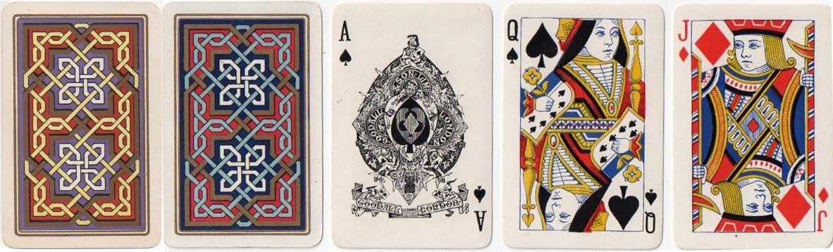 With some slight alterations making it more complicated the design continued in use right into the 1950s, when it was printed in two-tone and was commonly found in cheap canasta sets marketed by De La Rue.