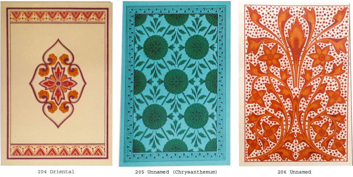 The top two on the left of the preceding eight examples are design number S137/D192, Oriental.