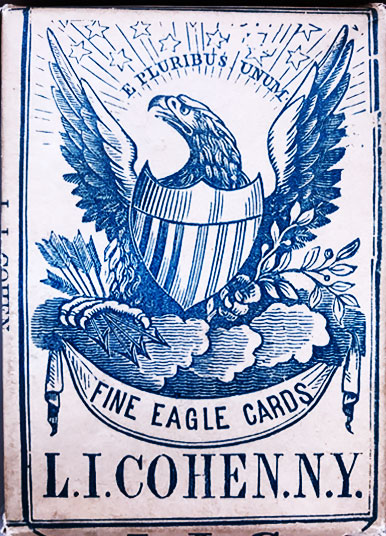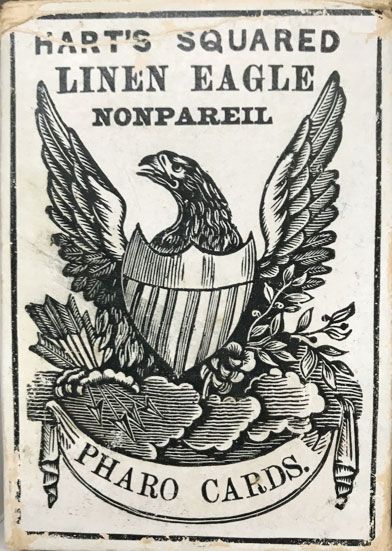 If you have seen a few older sets of playing cards, you may well have come across some odd names that are used on the wrappers and boxes: ‘Moguls’, ‘Harrys’, ‘Highlanders’ and ‘Merry Andrews’ were names used in England from the 1700s (and possibly earlier) until the early 1900s. In the USA these were adopted by the early makers, who also added their own American descriptions: ‘Eagle’ and later ‘Steamboats’.