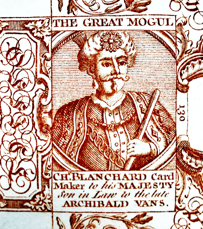 While the term ‘marketing’ would have meant little to these makers, the idea that a special sign added value was certainly understood and by 1743 Thomas Hill was also making cards carrying the sign of the Great Mogul.