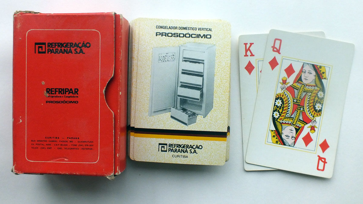 Brazilian playing cards advertising Prosdócimo upright freezers, manufactured by Cartográfica Industrial (Cartal), Curitiba, Brazil.