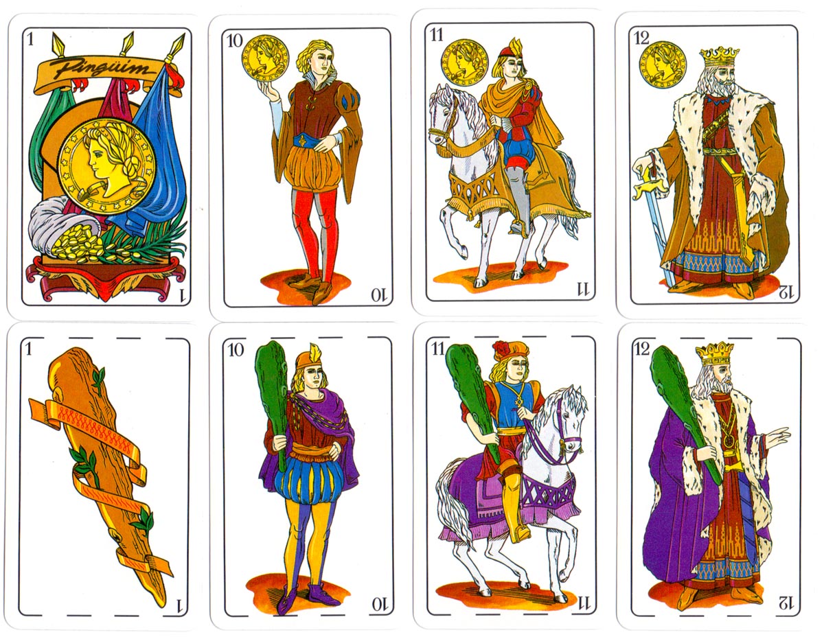 SOIMCA (Sociedade Impressora Caxiense) is an important playing card manufacturer in Brazil. It was established by Nelson Soares in Caxias do Sul, in the south of Brazil, by 1955. Its Pingüim brand is very popular. In 1993 SOIMCA asked the artist Gertre to design a new Spanish-suited pack, inspired on the Castilian pattern; they tried to introduce these into players’ circles but they were not well received. The designs were traded with COPAG and nowadays are used by COPAG as its Spanish-style cards for exportation. In 1999 SOIMCA jointed forces with COPAG, transferring its machines to Manaus.