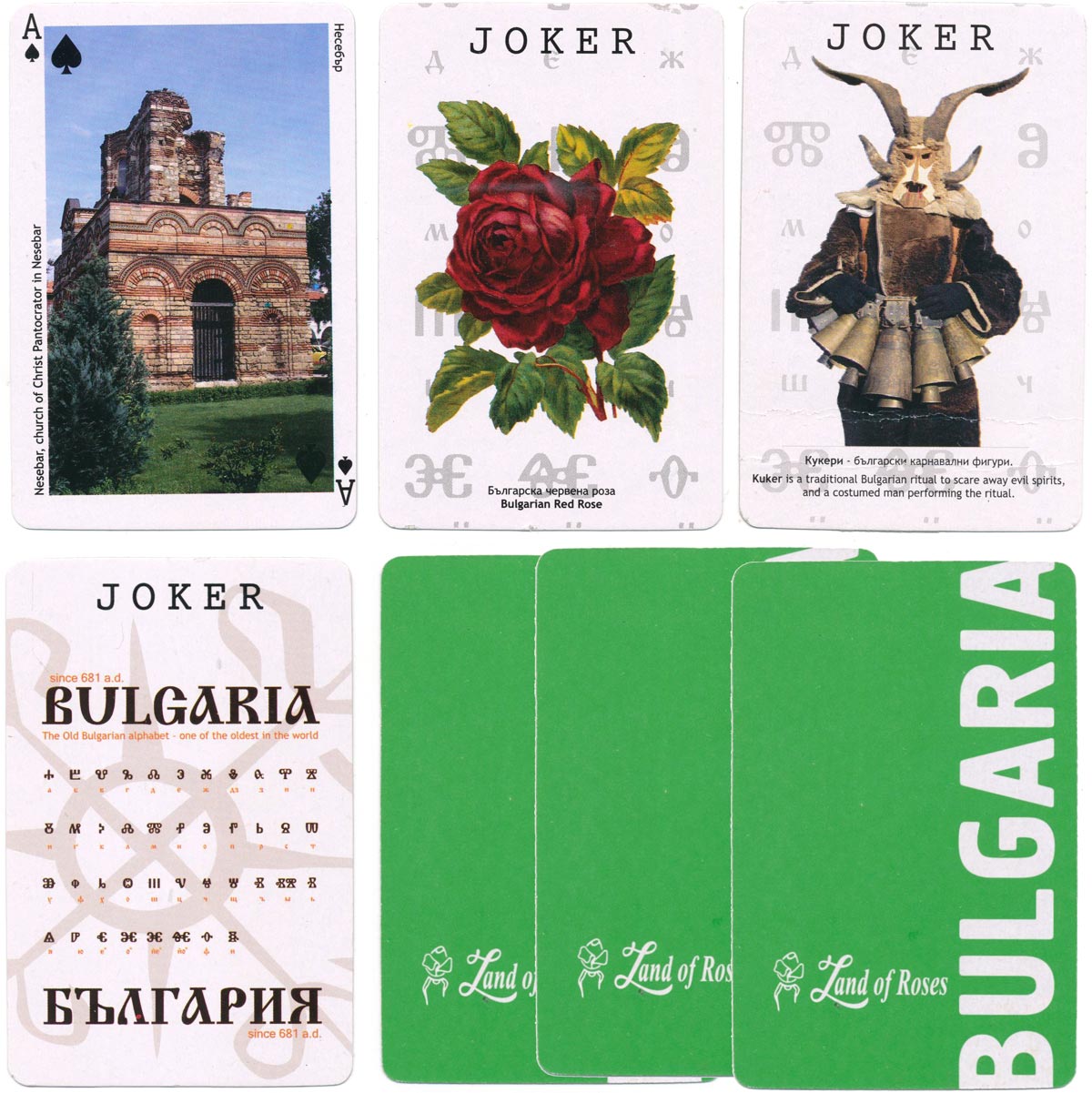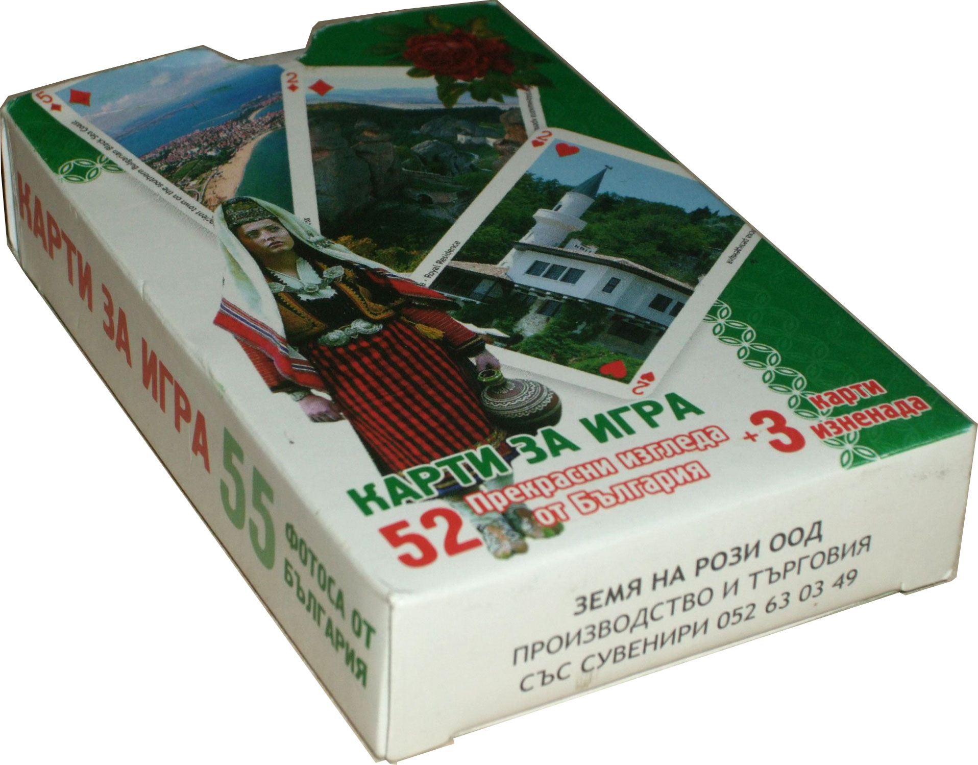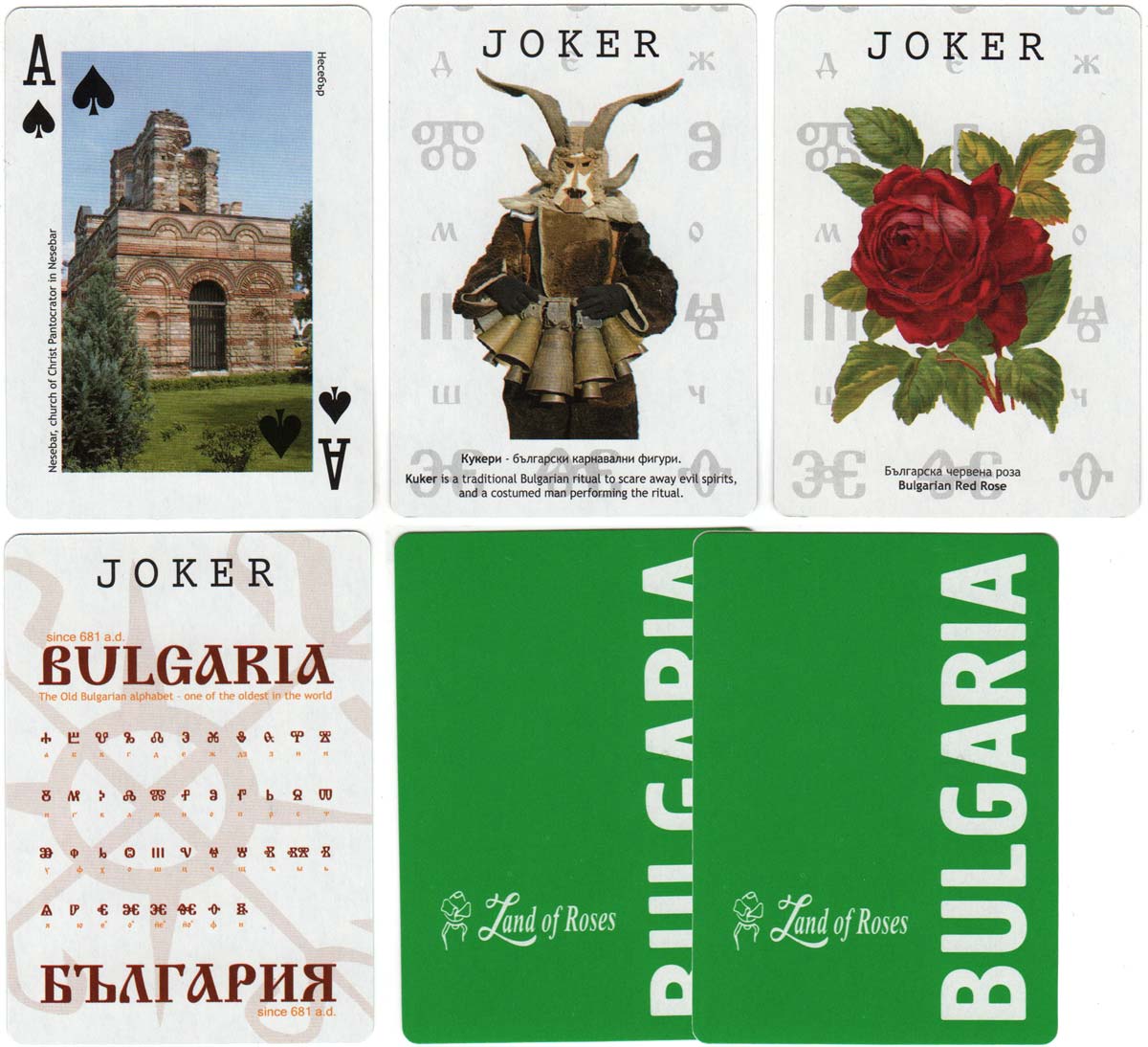 Above: Bulgaria Souvenir by Land of Roses Ltd. 52 cards + 3 jokers in box.