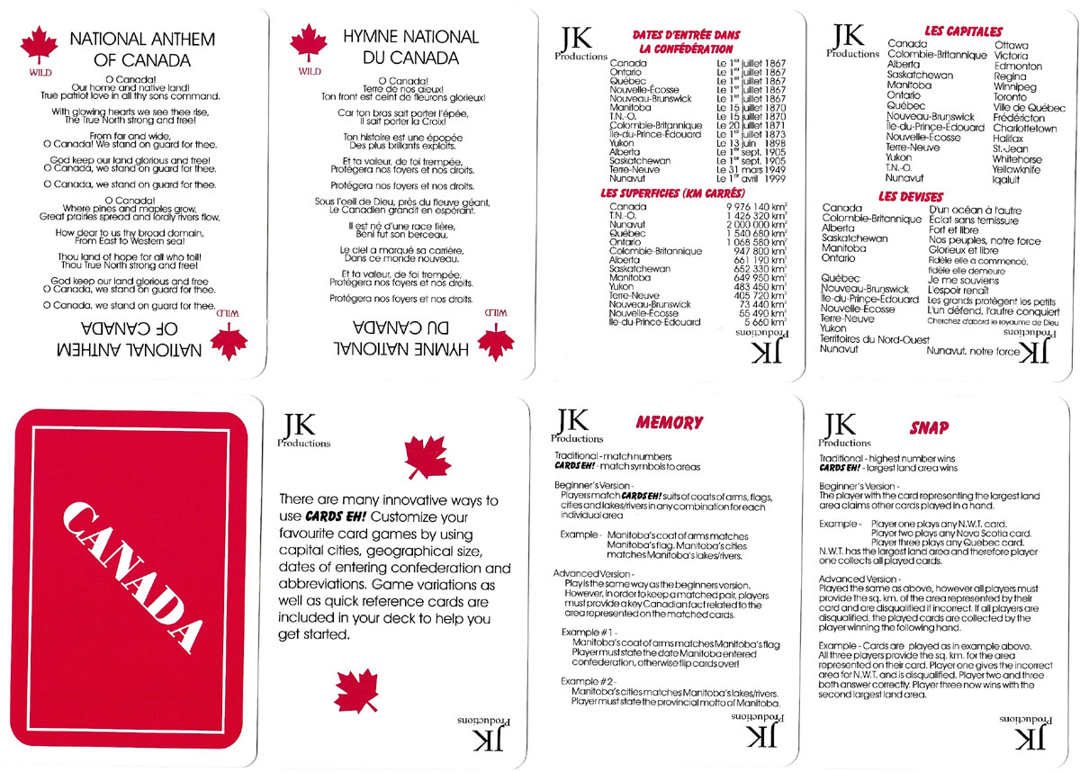 Above: “Cards Eh!” playing cards with general information about Canada produced by JK Productions of Richmond, British Columbia in 2002.