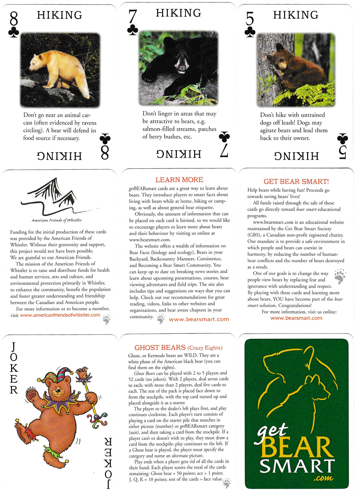 Above: “Get Bear Smart” playing cards published by the Get Bear Smart Society, Canada, 2005.
