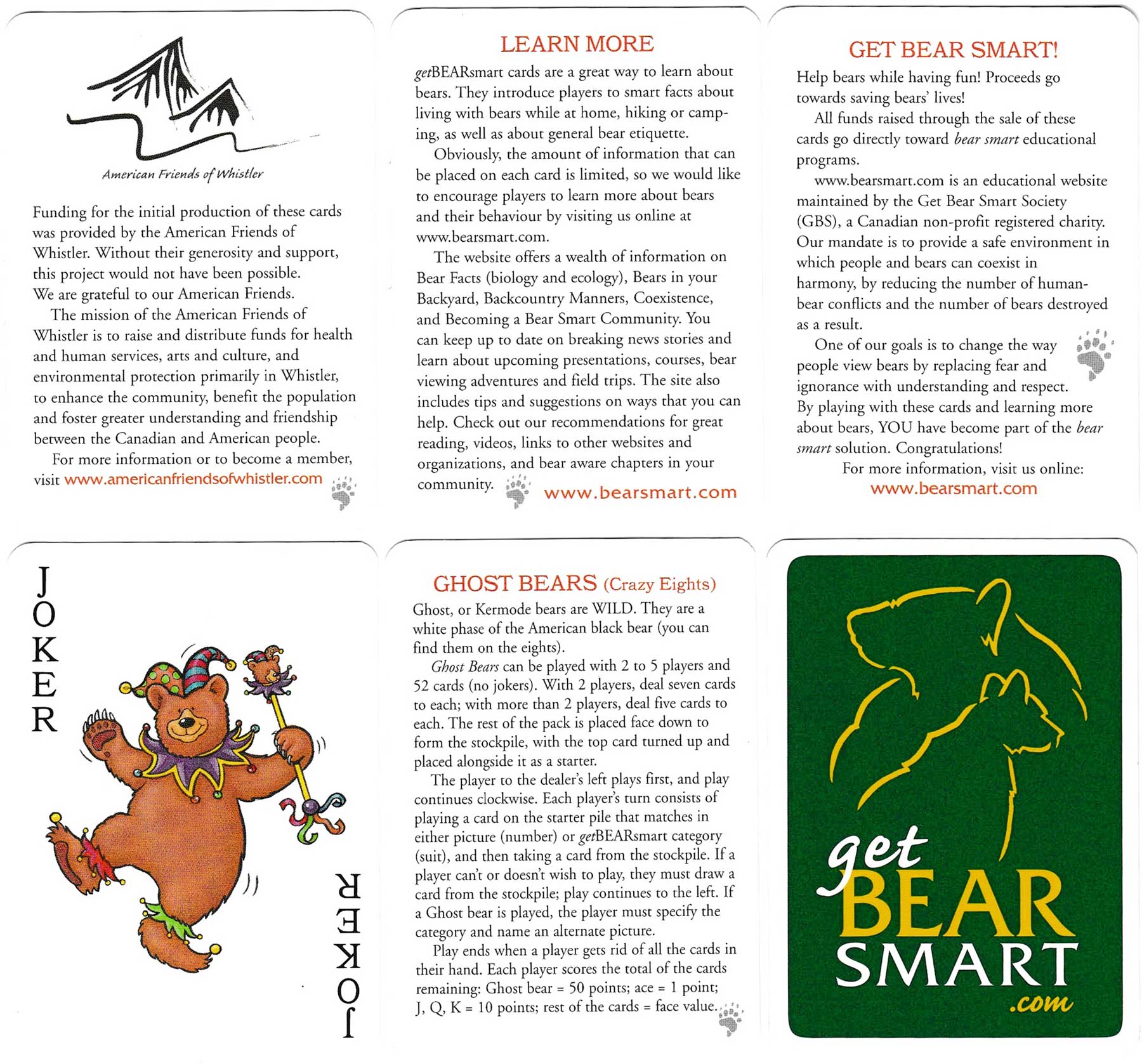 “Get Bear Smart” playing cards published by the Get Bear Smart Society, Canada, 2005.