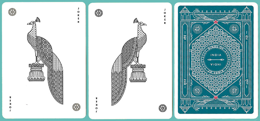 This pack was designed by Humble Raja, a Montreal-based design studio established by Bhavesh and Reena Mistry to investigate, celebrate and share their South Asian identity through illustration. It was funded through Kickstarter and printed by the United States Playing Card Company in 2015. See the box►