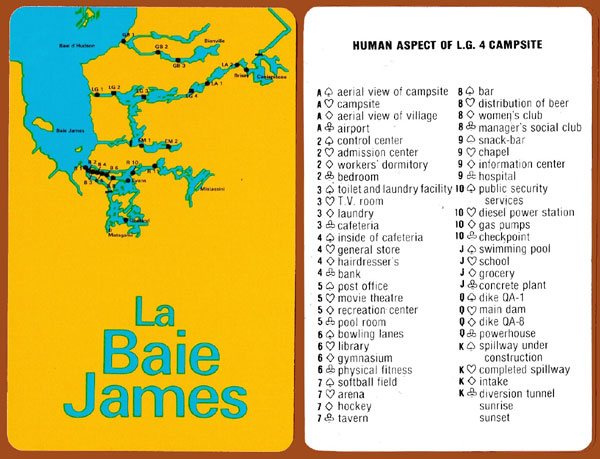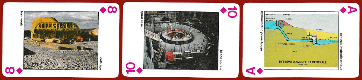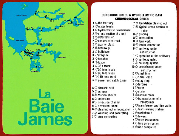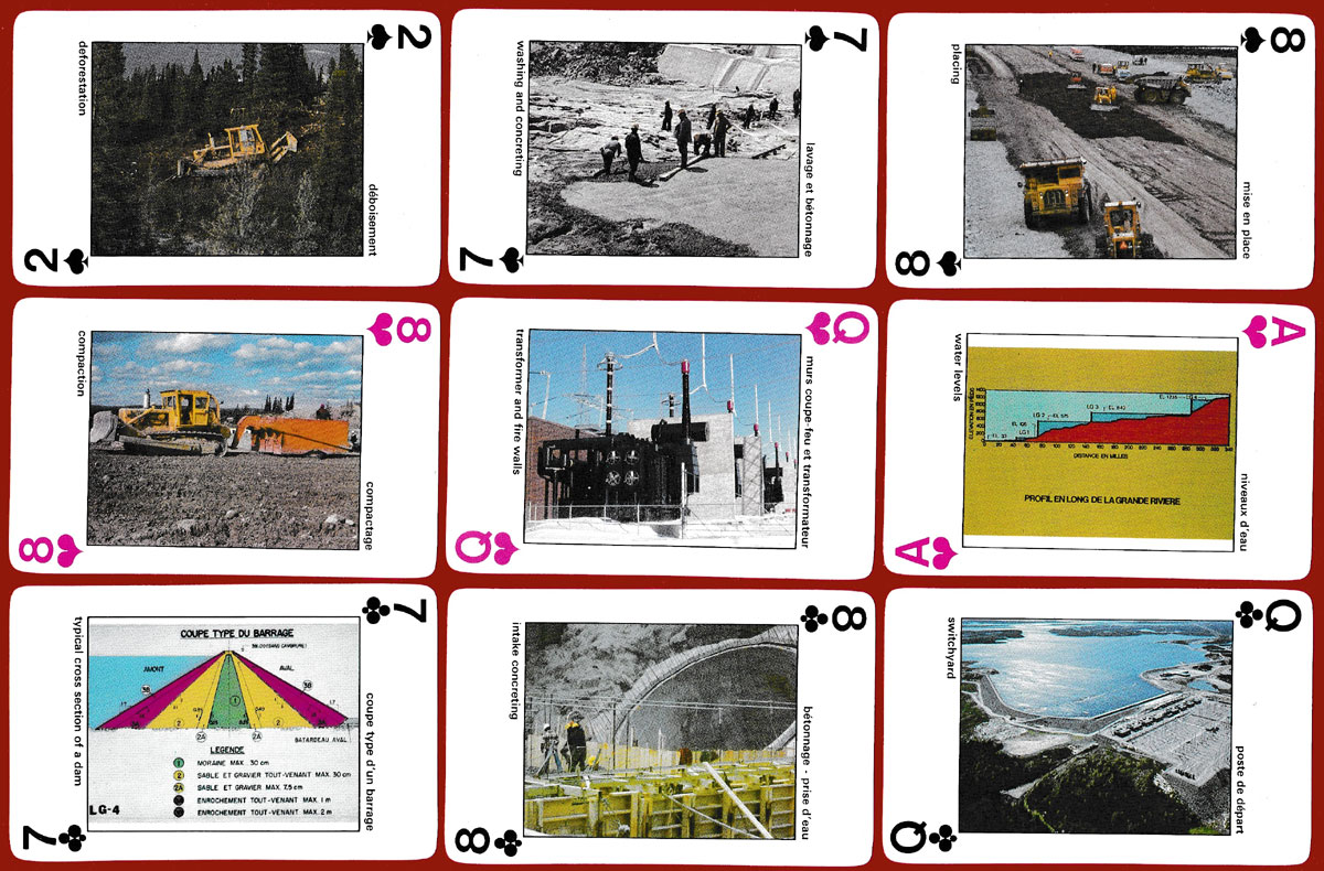 Above: playing cards documenting the construction phase of the James Bay hydro-electricity project in Quebec, Canada.
