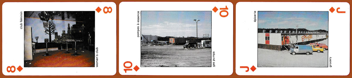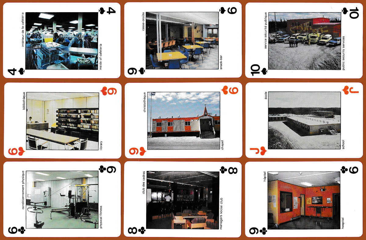 Above: playing cards documenting the human aspect of one of the many campsites that were established during the construction process of the James Bay hydro-electricity project in Quebec, Canada.