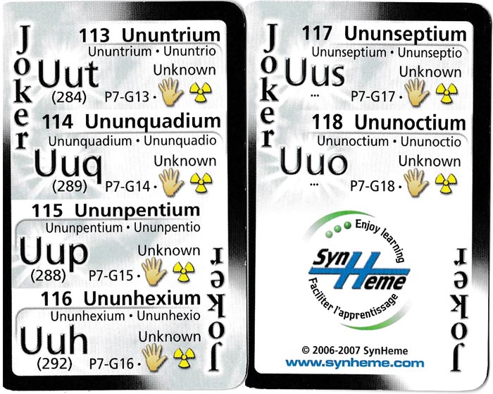 Above: Periodic Table playing cards produced by Synheme Inc., Canada, c. 2006-2007.