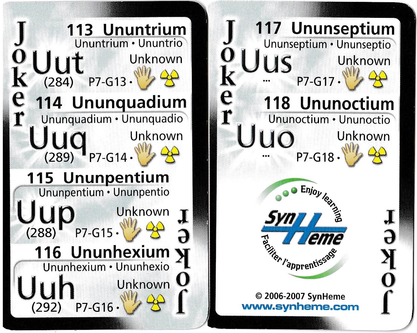 Periodic Table playing cards produced by Synheme Inc., Canada, c. 2006-2007.
