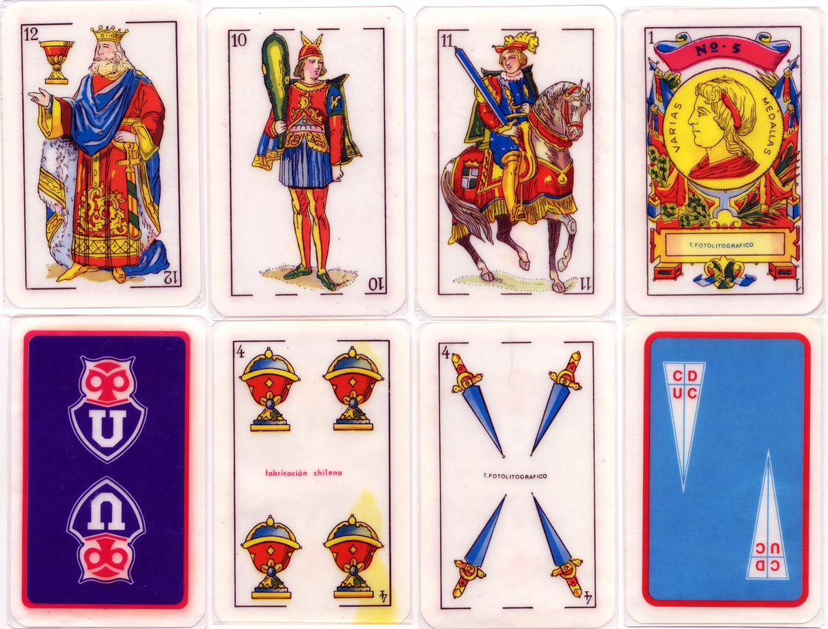 Spanish-suited playing cards manufactured in Chile by Imprenta y Litografía Universo S.A., Valparais...
