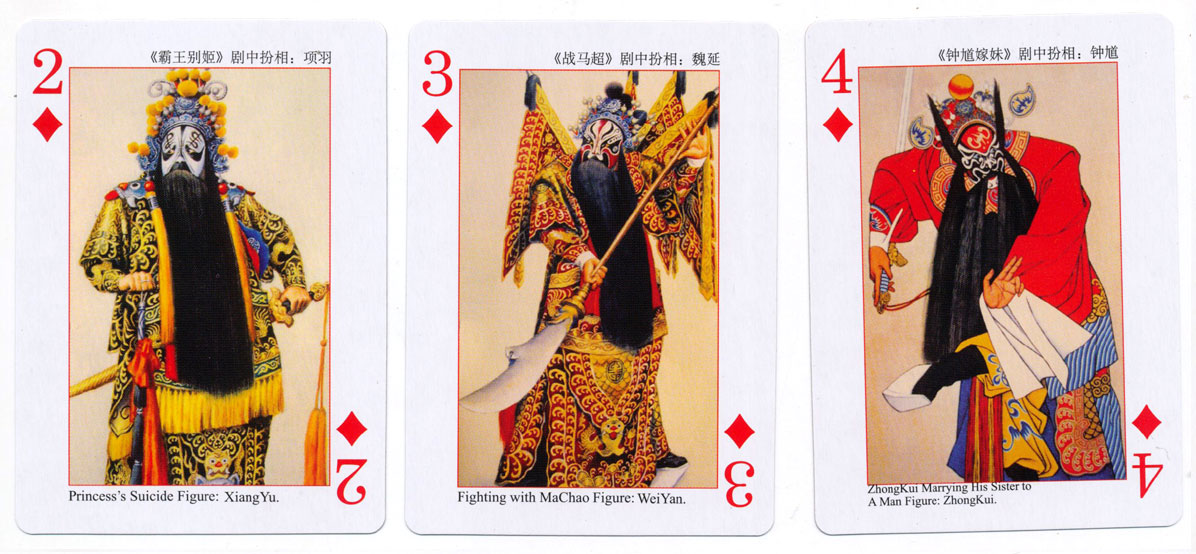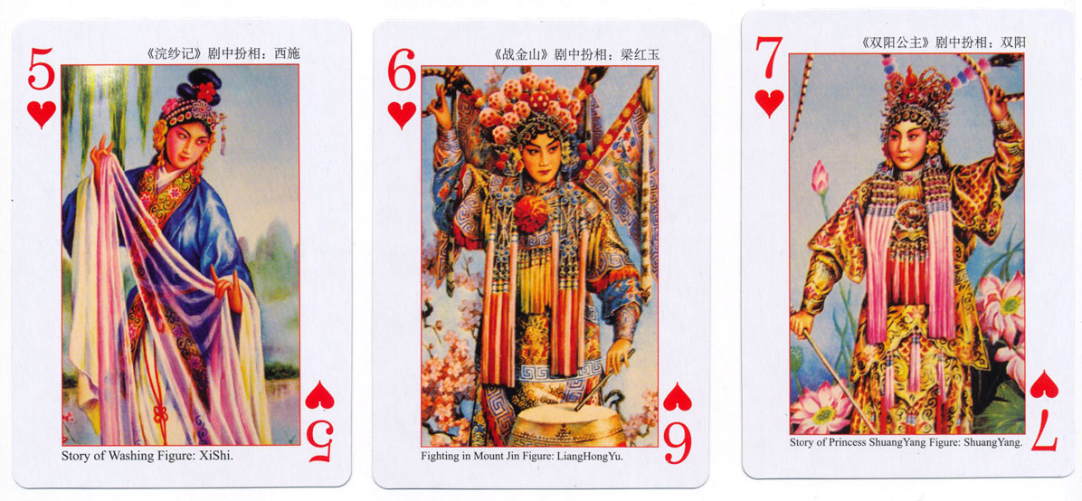 Above: “Chinese Roles of Beijing Opera” playing cards, 54 cards printed on 280gm high-grade poker Zhonghua Paper by HCG Poker Productions, 2005.