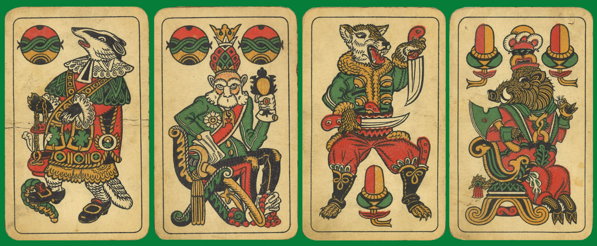Above: Animal Skat designed by Alois Mudrunka and produced by Česká Grafická Unie, Czechoslovakia, 1919. 32 cards.