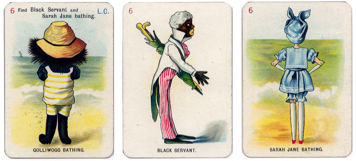 ¹ NOTE The black faced doll came out of the American tradition of black faced minstrels (which began around 1830) in which white men and a few black men wore intense black make up and sang songs in a fake Southern accent. When it came to the UK in the late 19th century it was very popular in the Music Halls and special Minstrel shows. The extremely popular children’s book “Little Black Sambo” was published in 1899 and was still on sale in the 1940s. Agatha Christie wrote “Ten Little Niggers” in 1939. Although the title was revised much later the stage adaptation was first performed in London entitled “Ten Little Niggers” later to become “Ten Little Indians” and finally “And then there were None”. In the 1927 film “The Jazz Singer”, the first talkie, Al Jolson appeared blacked up to sing some of the songs as he had been doing on the stage for years. Jolson himself, being a Jew, knew racial prejudice well and, ironically, campaigned against black prejudice. The Uptons who wrote the Golliwogg books had migrated to the USA and this may be the reason behind the stories where black faced dolls were commonplace. Many children had a golliwog doll but we know better now!