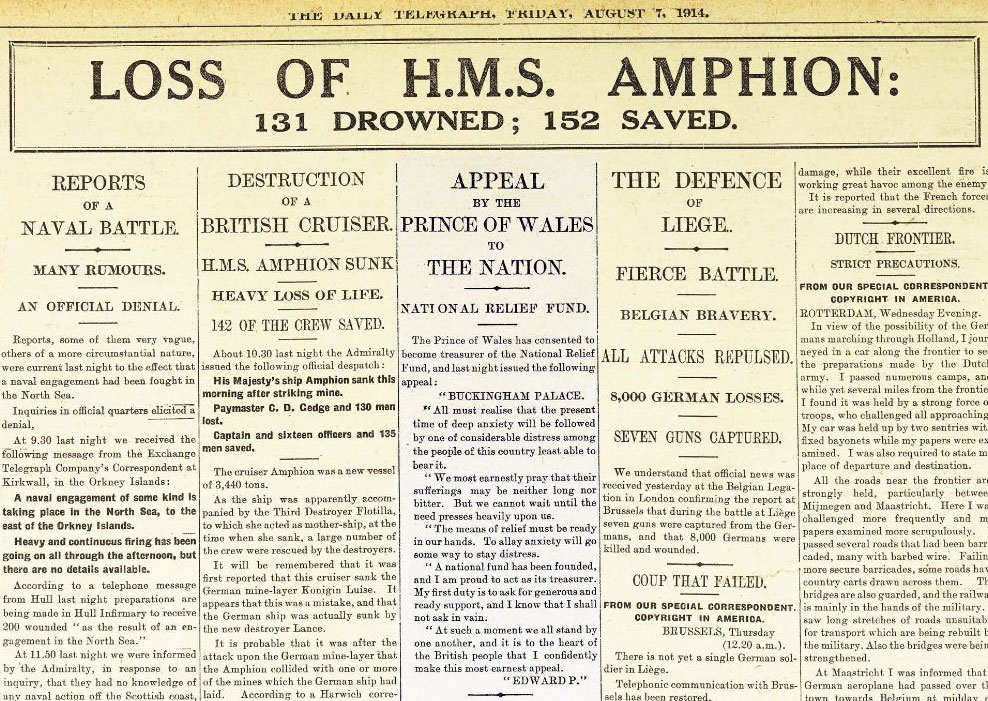 A column in the Daily Telegraph published on August 7th 1914 quotes the appeal from Buckingham Palace regarding the National Relief Fund►