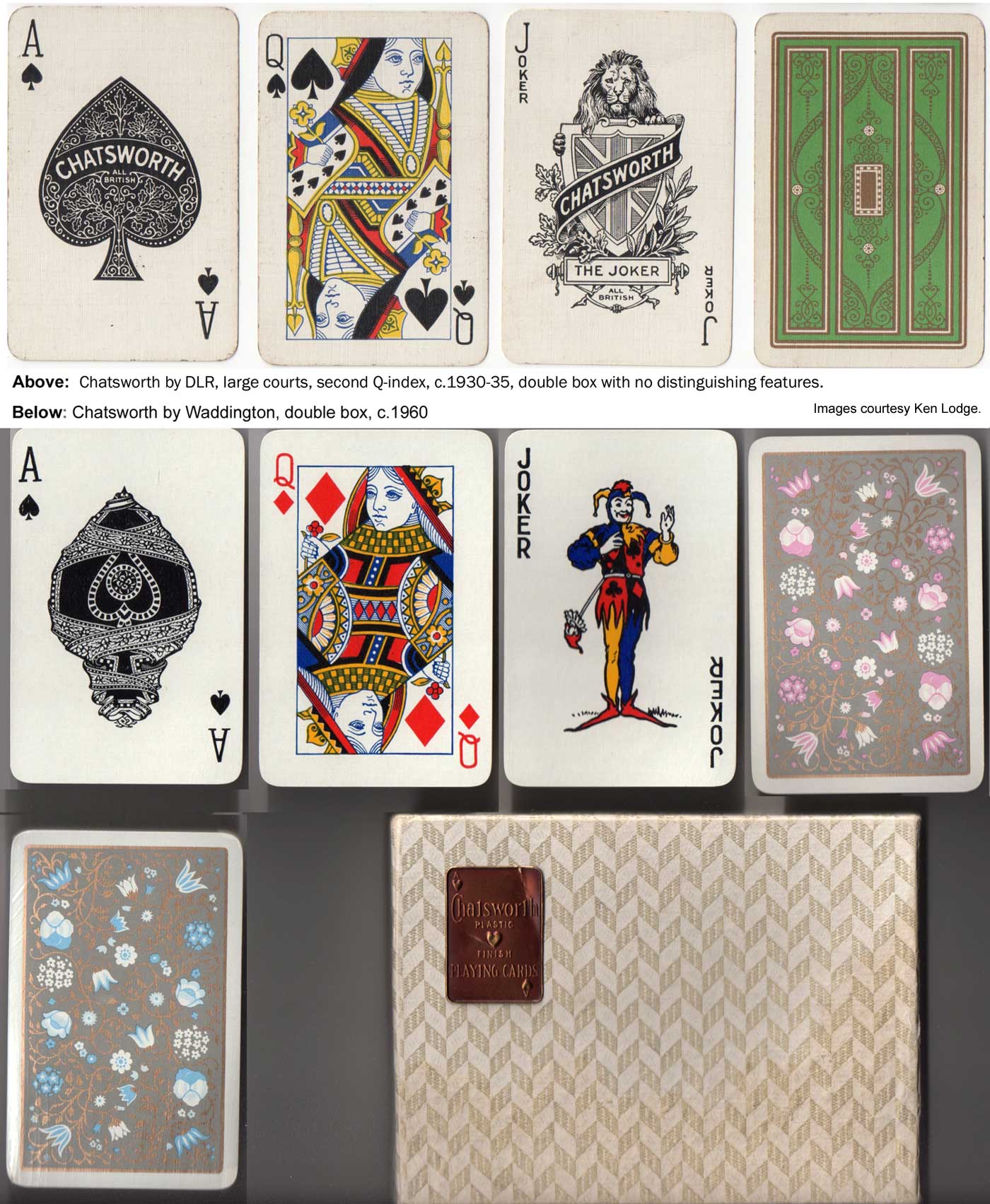 Above: Top: earliest smaller courts (GD11) with white on QD's shoulder, c.1932-35. Bottom: large courts still with later Q-index, DLR joker and 1935+ bridge score, 1935-39. Images courtesy Ken Lodge.