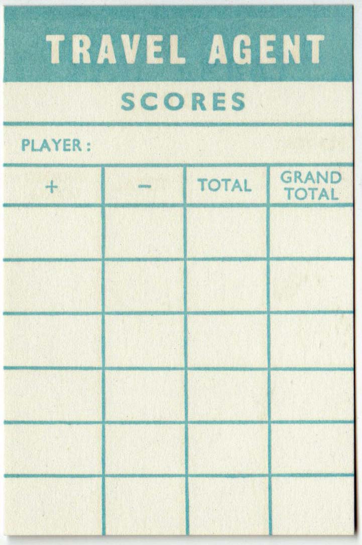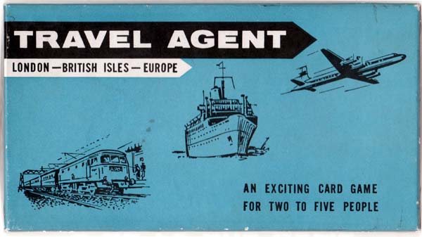 Travel Agent is a card game designed by Martin A. Foley and manufactured by Thomas de la Rue & Co Ltd, c.1960. The object of the game is to make the highest scoring journey or journeys as quickly as possible. See the box→