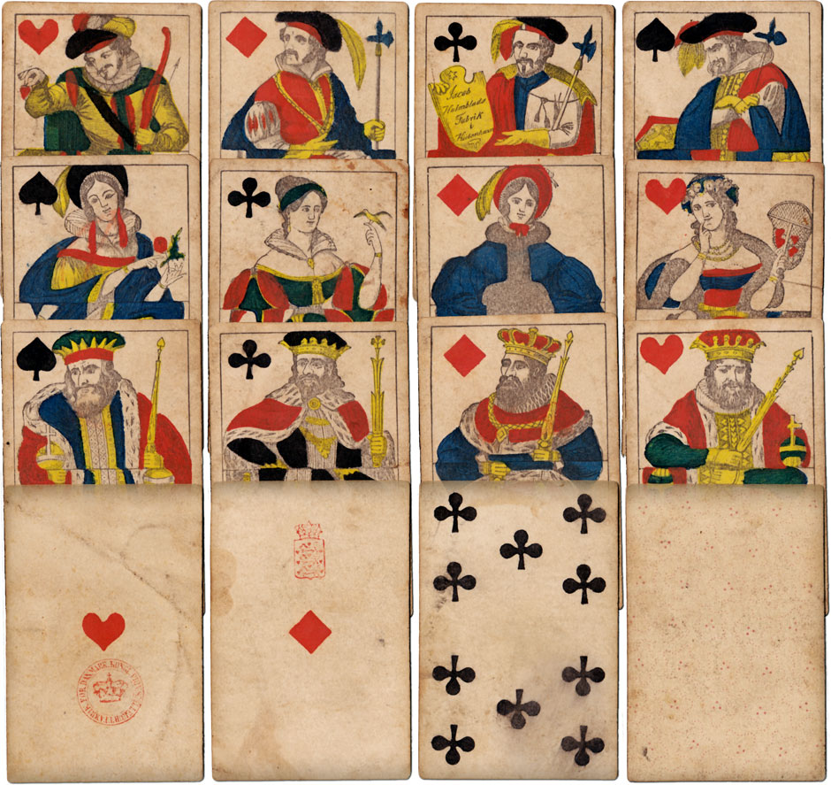 Above: playing cards made by Jacob Holmblad, Copenhagen, 1820s.