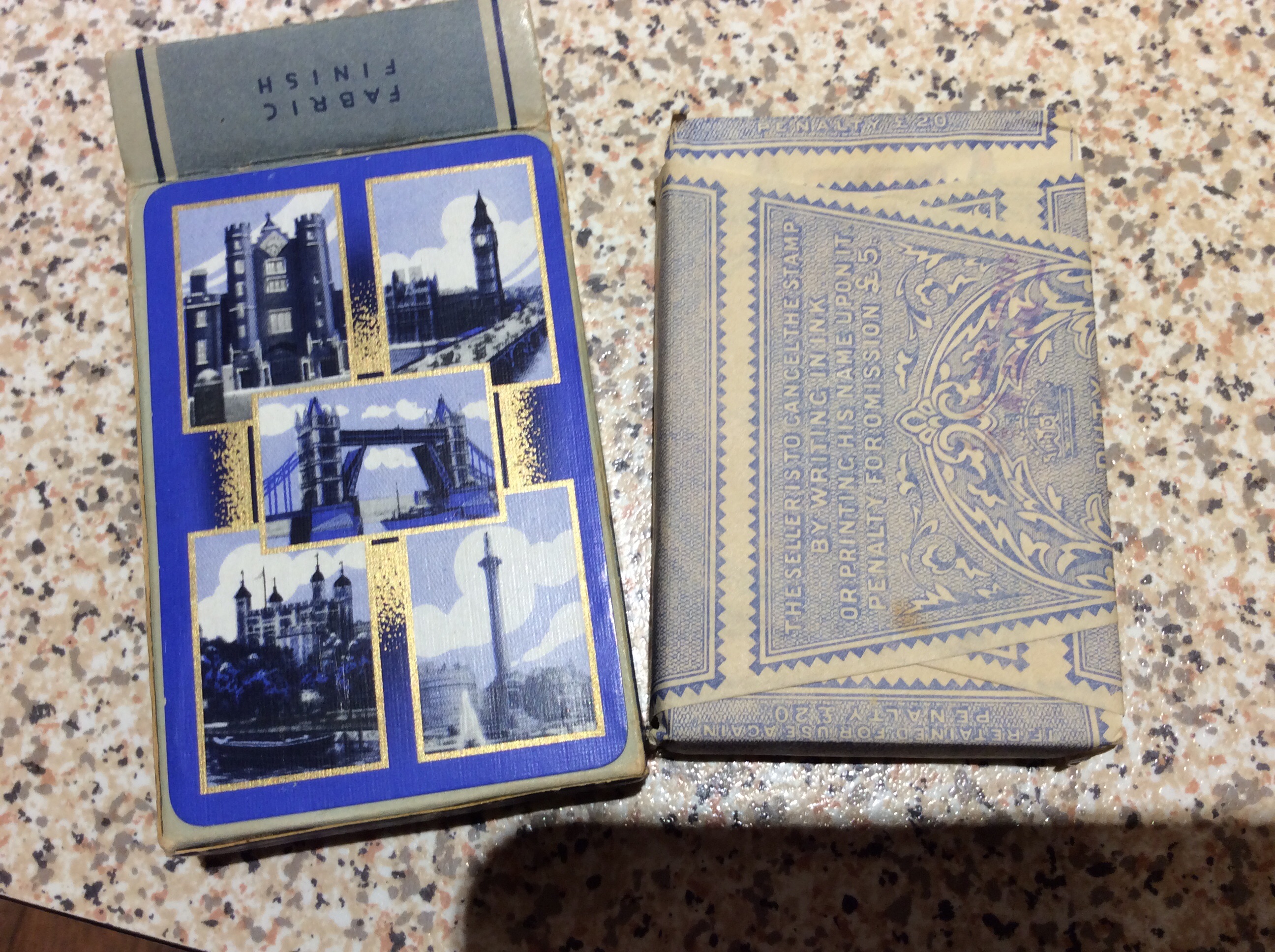 I have a pack of the above in a blue box with London scenes on the rear. The tax wrapper is intact and has been stamped, I think by Woolworths. From the style of the box my guess is these are from just pre or during WW2. I have absolutely no interest in keeping them as they probably came from my parents, both of whom died in the 1970’s and have resided in a memorabilia box since then. My guess looking at eBay is they are worth circa £25.