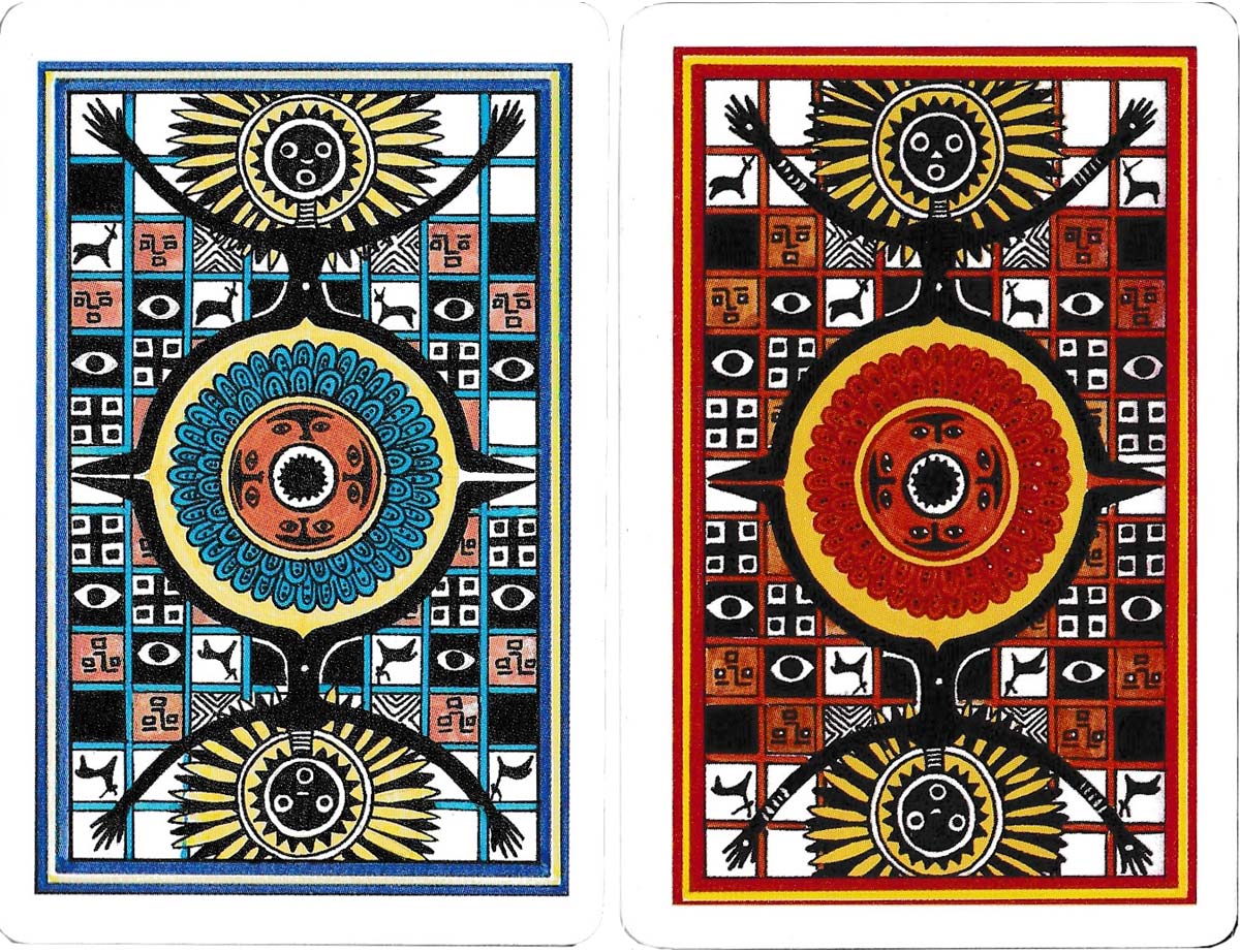 Above: KITAB playing cards with artwork by Abayneh Abebe, Ethiopia. 52 cards + 2 jokers + extra card, undated. The backs are certainly colourful and, I would say, Ethiopian in design!