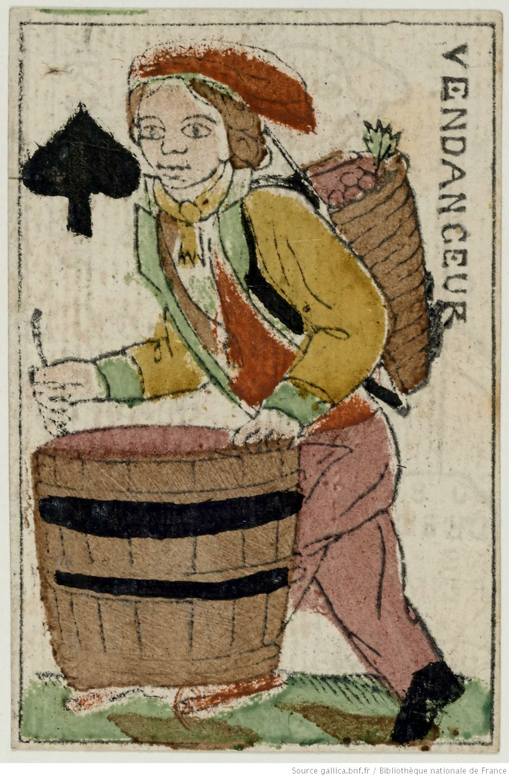 One achievement of the Revolution was the liberation of card makers from reproducing the official standard pattern. “Jeu des Quatre Saisons de l’An II” is a French Revolution pack originally printed from woodblocks and coloured with stencils and published by J. B. Debeine (Reims) 1793. The traditional hierarchical royalty have been replaced with new humanist figures including rural activities and philosophers.