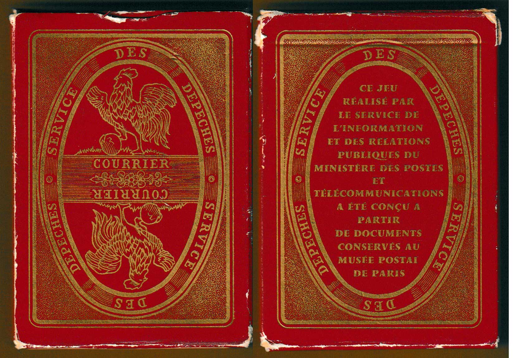 Above: Ministère des Postes et Télécommunications playing cards made by Boéchat Frères, Bordeaux, for Ed. J.C. Dusserre, Paris, France, c1980. 52 cards + 2 Jokers + 1 extra card in tuck box. Size: 63 x 88 mm.