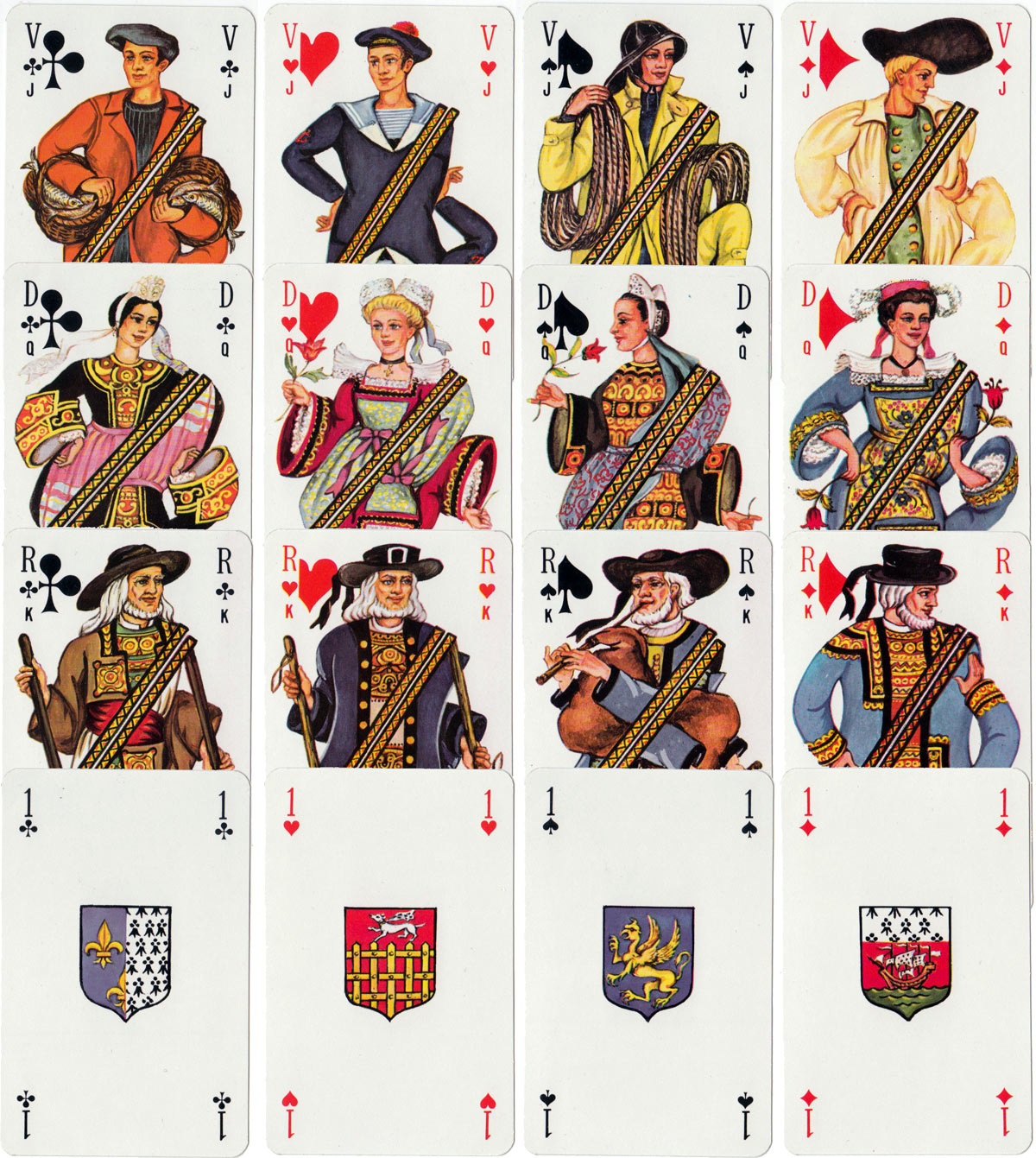 Above: Jeu de Cartes “Bretagne” featuring Breton folklore, manufactured by Carta Mundi. Earlier editions were published in Belgium by Mesmaekers. Images courtesy Rex Pitts.