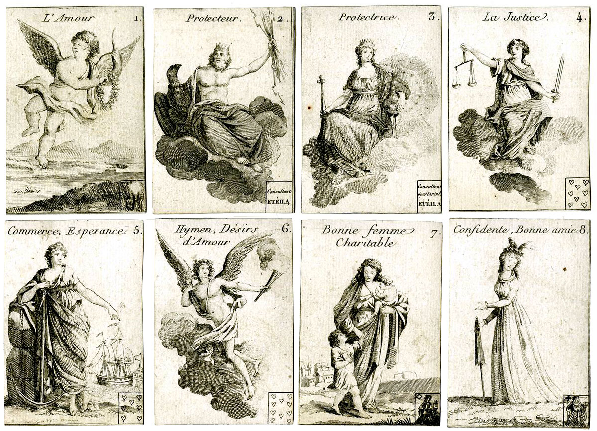 “Le Nouvel Etteilla” cartomancy deck published in Paris by La Veuve Gueffier, 1806.