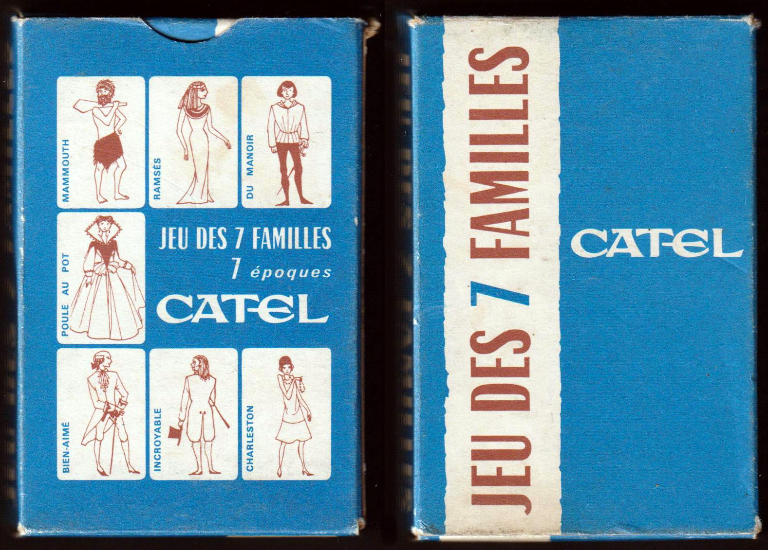 Above: “Jeu des 7 familles 7 époques” published by Catel et Farcy, France, 1962. 42 cards (lacking the rules) in tuck box. Size: 57 x 87 mm.