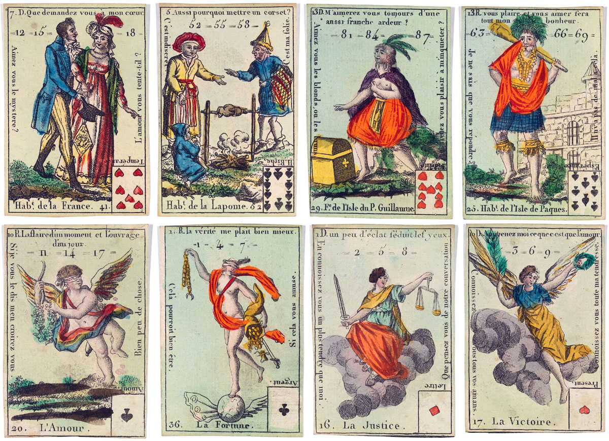 “Nouvel Eteila ou le petit nécromancien” cartomancy cards from France, late 18th century.