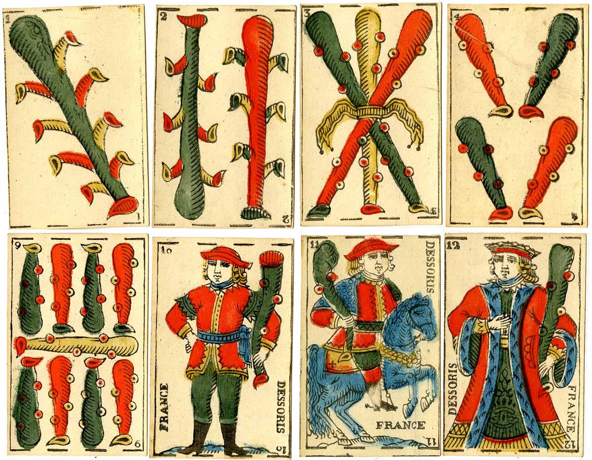 Spanish-suited cards by Dessoris, Perpignan, which anticipate the French Catalan pattern.