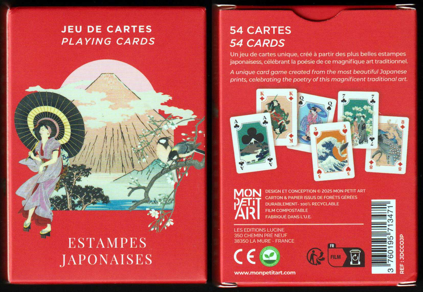 Above: Estampes japonaises playing cards published by Les Editions Lucine, La Mure, France, 2025. Printed in the E.U. 52 cards + 2 Jokers in tuck box. Size: 63 x 88 mm. Design et conception © 2025 Mon Petit Art