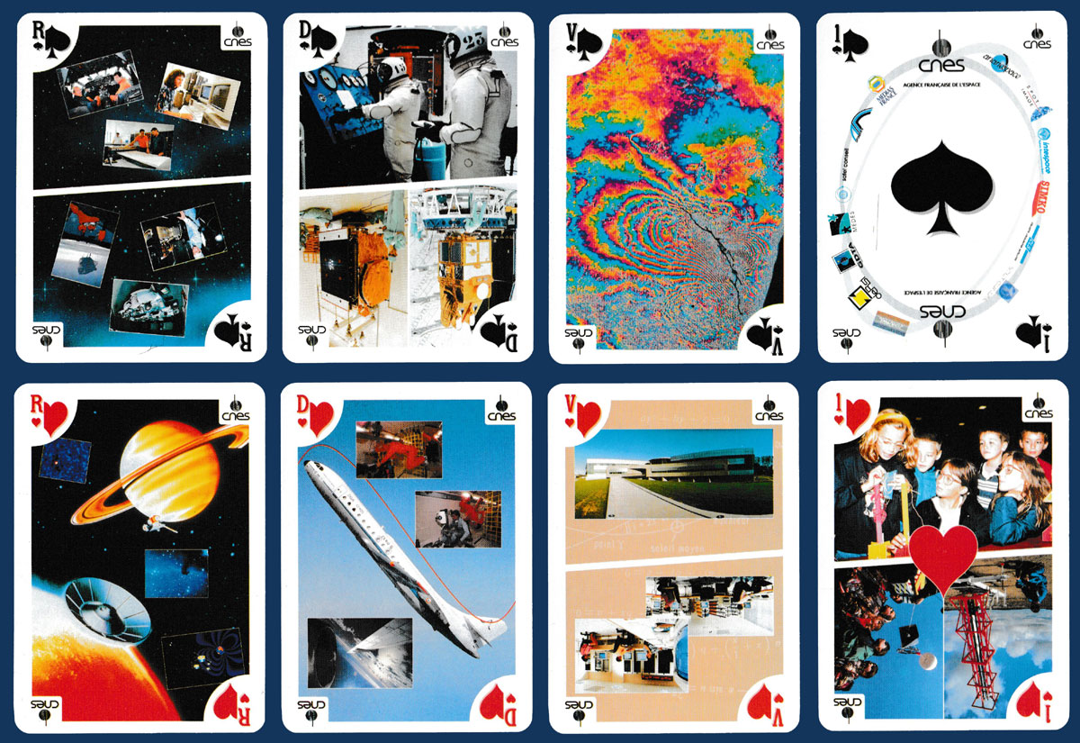 Above: playing cards made by Heron, S.A., Mérignac, for CNES, Paris and Toulouse, France, 1995. © CNES 1995.