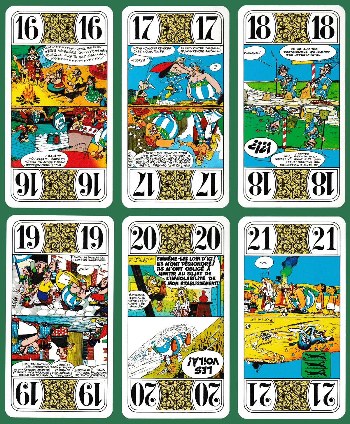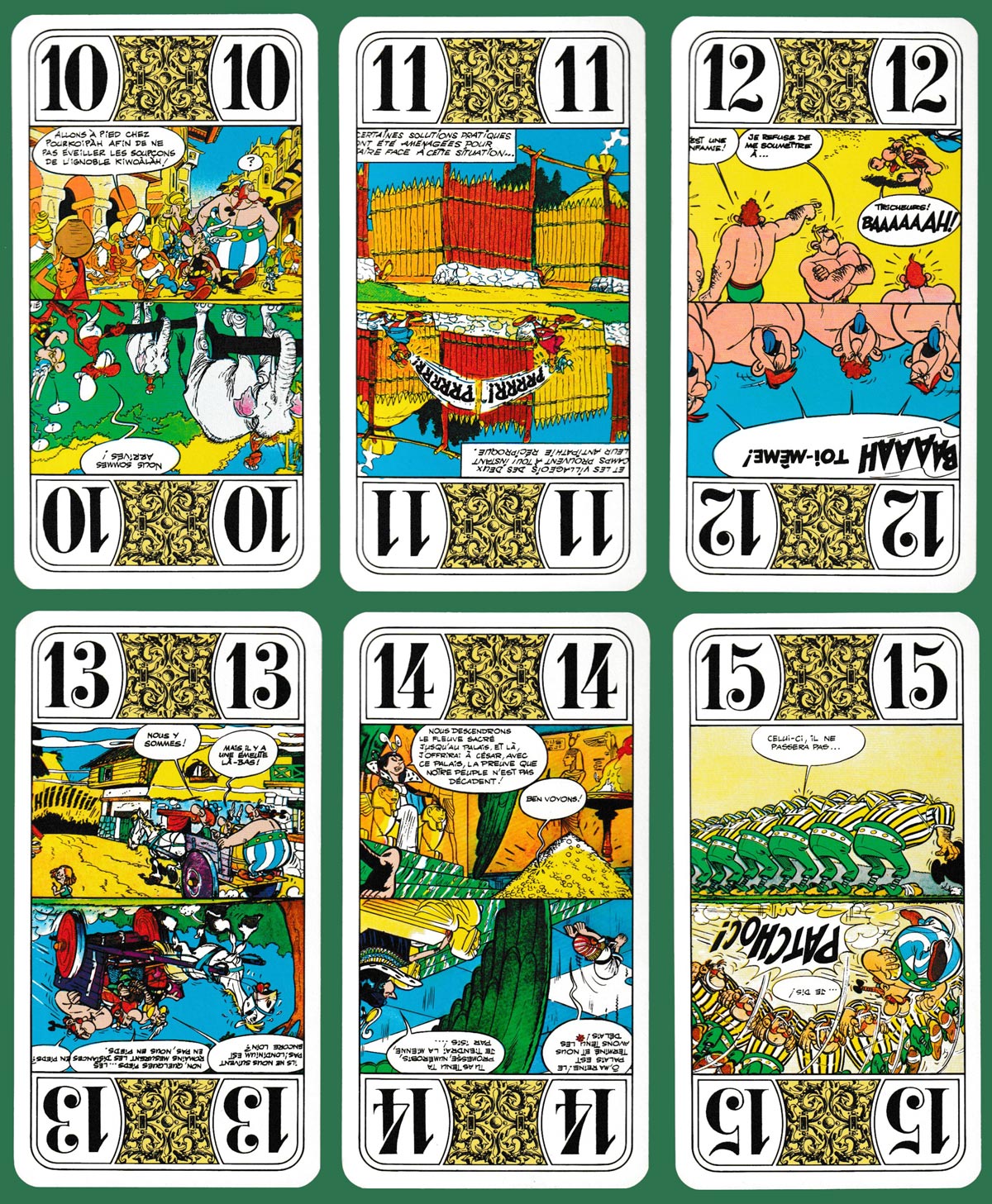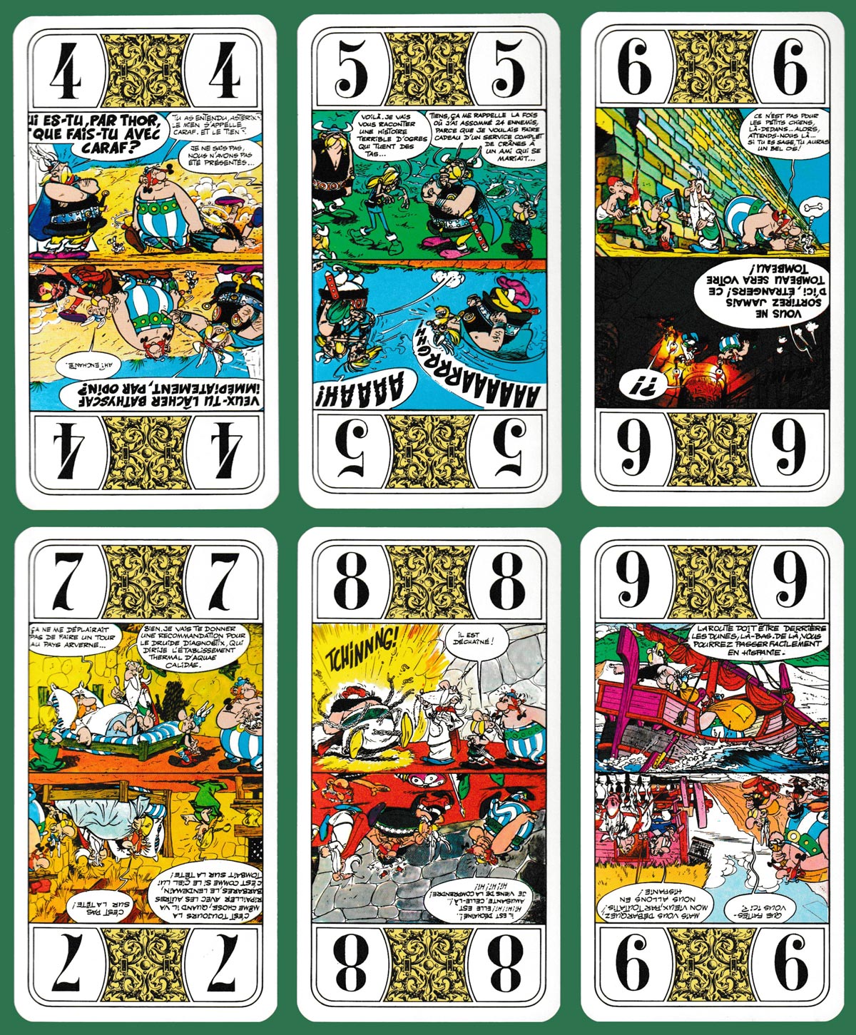Above: Jeu de Tarot Astérix made and published by France Cartes, Saint-Max, France, 1997. 78 cards + 1 title card + 1 extra card (with card values in the game) + leaflet of rules in French, in tuck box. Size: 60 x 113 mm. © 1997 Les Editions Albert René / Goscinny-Uderzo.