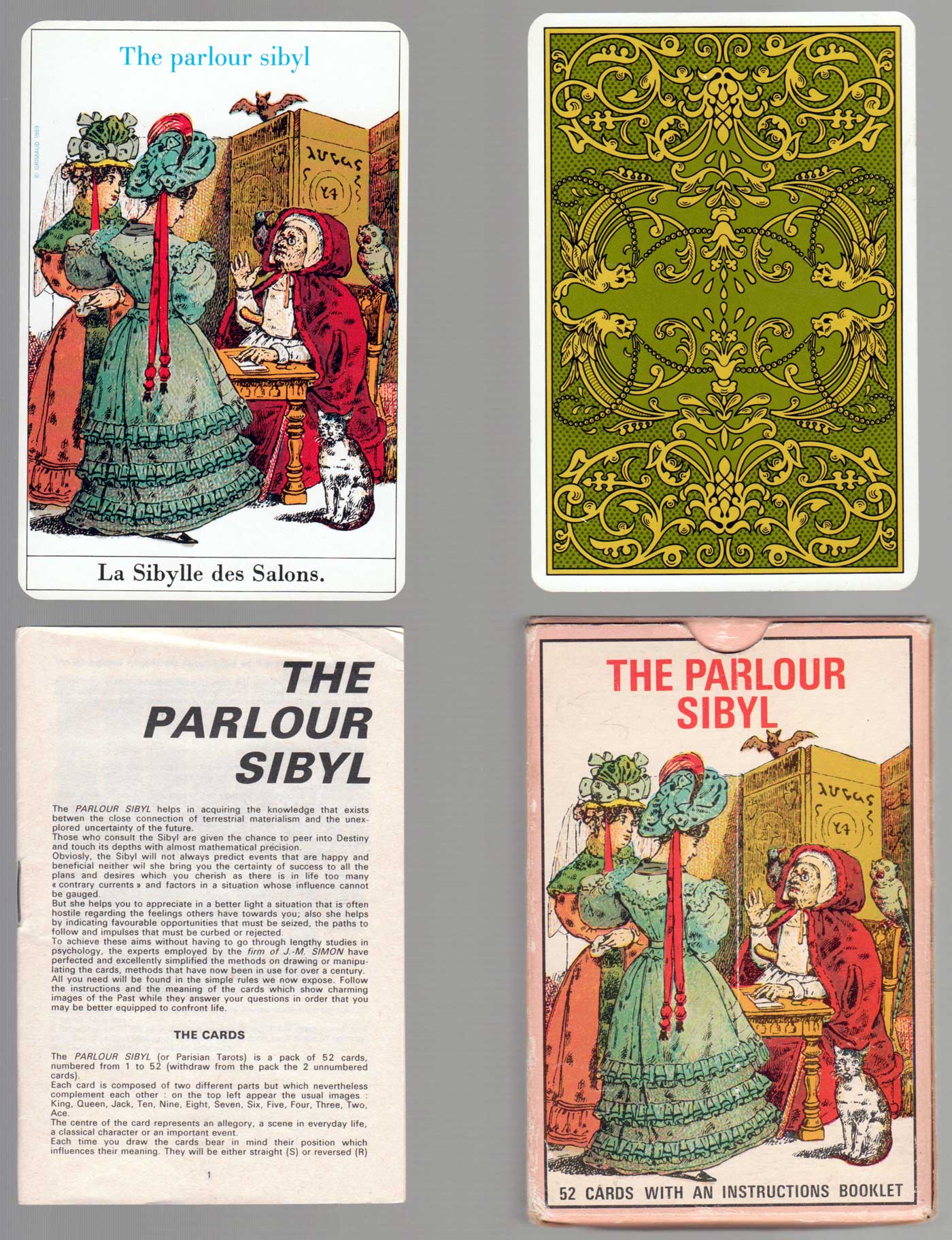 Above: La Sibylle des Salons (“The Parlour Sibyl”) facsimile published by J M Simon / France Cartes, 1979. 52 cards plus instruction book in French and English. Cards measure 75mm x 114mm.
