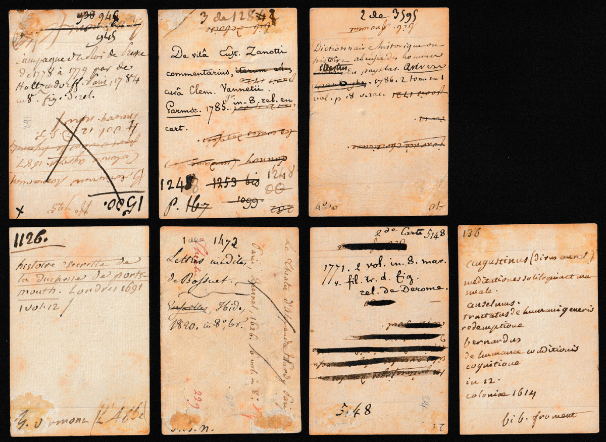 As is often found on cards of this period, the plain backs have been used for a secondary purpose, in this case to record the titles and dates of a collection of books.