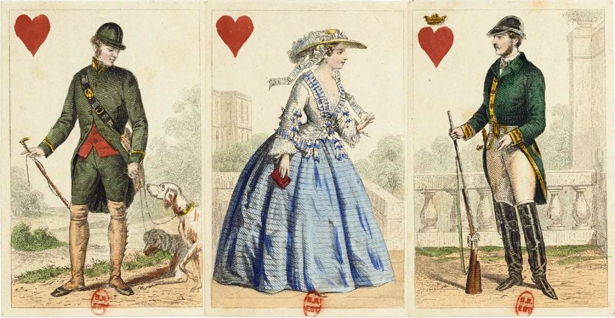 Gibert was a master card-maker whose fashionable playing cards were of a very high standard. Gibert produced a range of elegant, neatly etched and hand-coloured costume playing cards during the mid-19th century, depicting contemporary fashion or that of bygone eras.