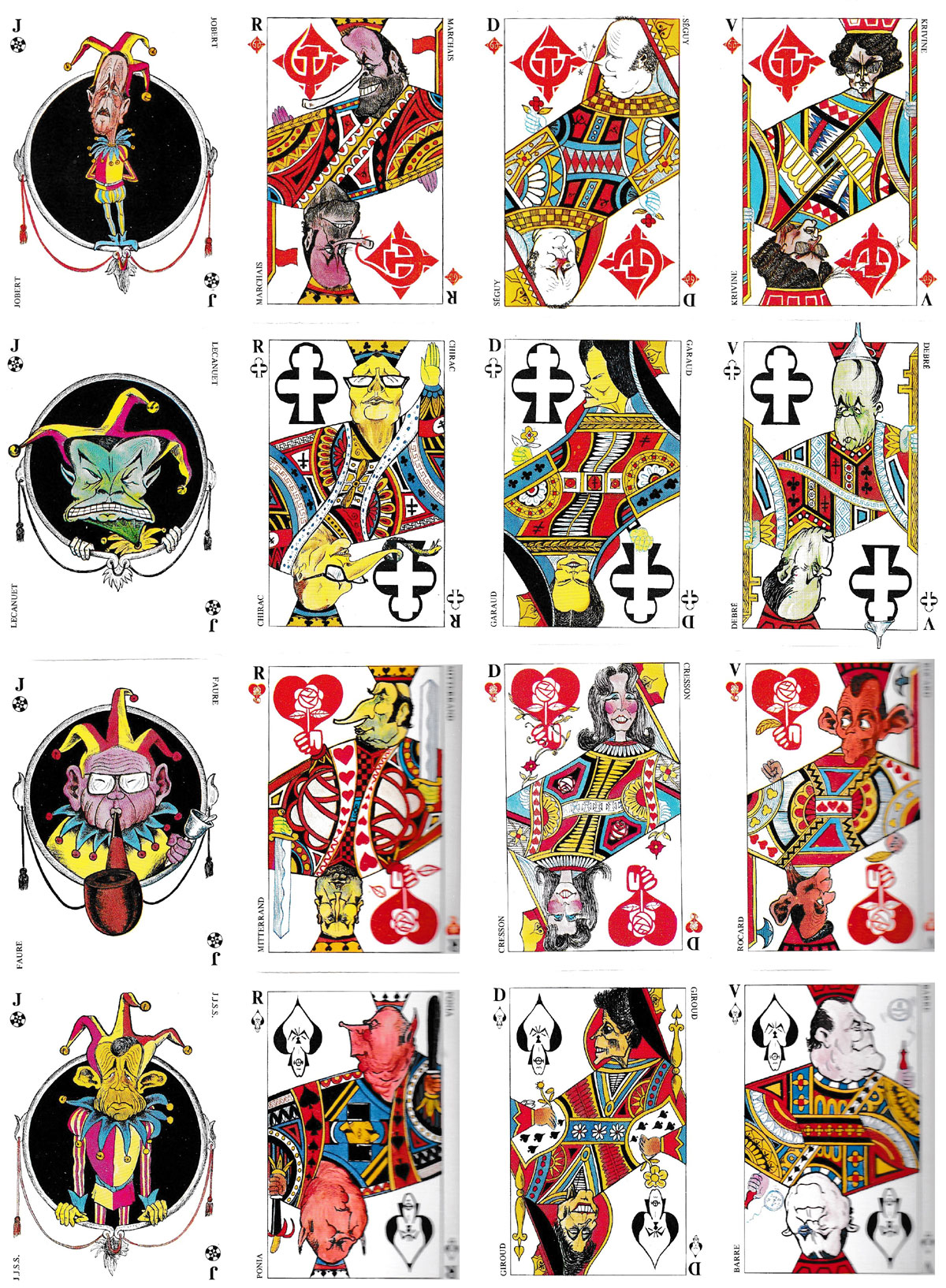 - Spades: Ace - Valery Giscard D’Estaing; King – Michel Poniatowski; Queen – Françoise Giroud; Valet – Raymond Barre